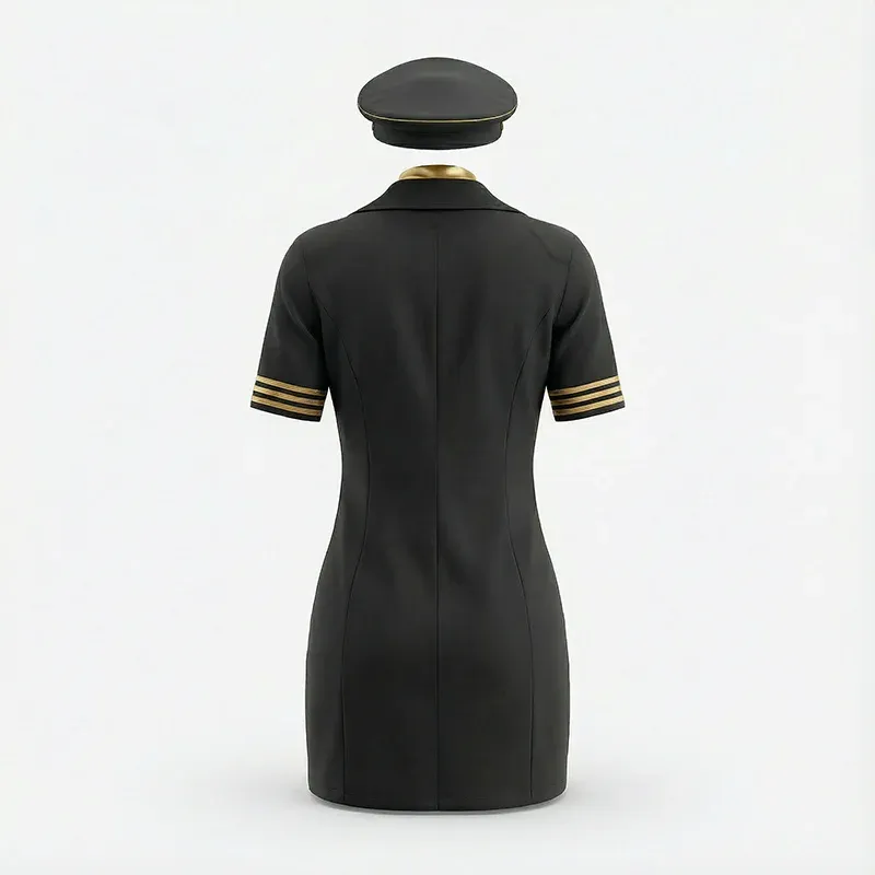 Fräck Flygvärdinna Uniform Sexig Svart Flygvärdinneklädsel