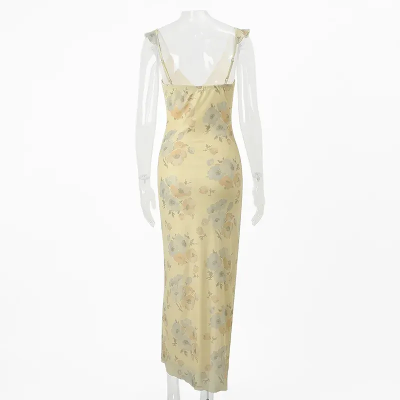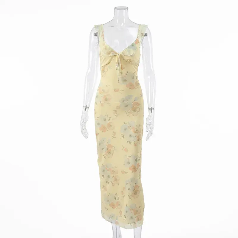 Somrig blommig rygglös klänning
