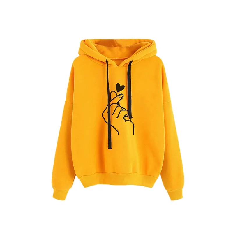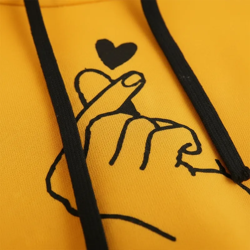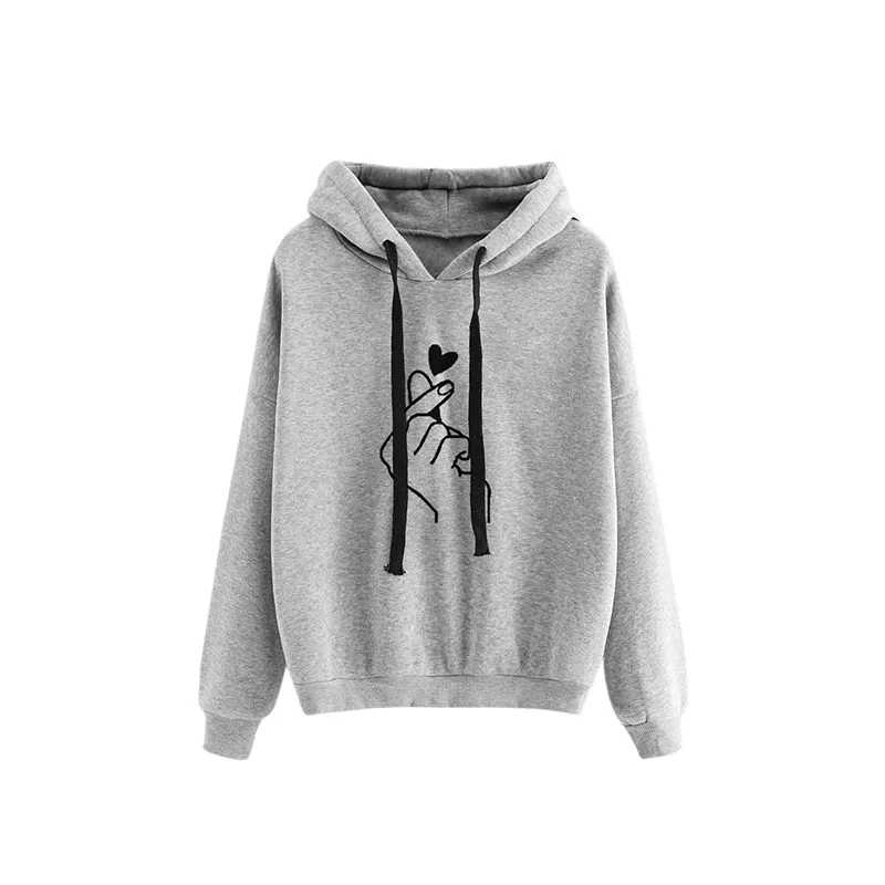 Sara K.Hoodien är supermysig! Jag har på mig den under kyliga morgonpromenader och håller mig alltid varm. Fingerhjärtdesignen är riktigt söt och får mig att le.