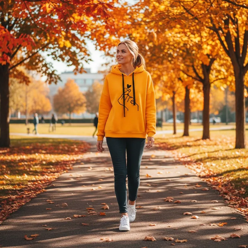 Denna hoodie ger varaktig värme för kyliga dagar utan onödig vikt. Det mjuka fleecetyget känns behagligt mot huden och håller dig bekväm vart du än går. Den avslappnade passformen gör det enkelt att bära lager, vilket gör den mångsidig för vardagsbruk. Ett charmigt fingerhjärta-tryck ger garderoben en glädjefull karaktär och omedelbar attraktionskraft. Njut av både funktionalitet och lekfull stil när du bär denna hoodie.