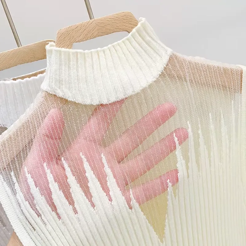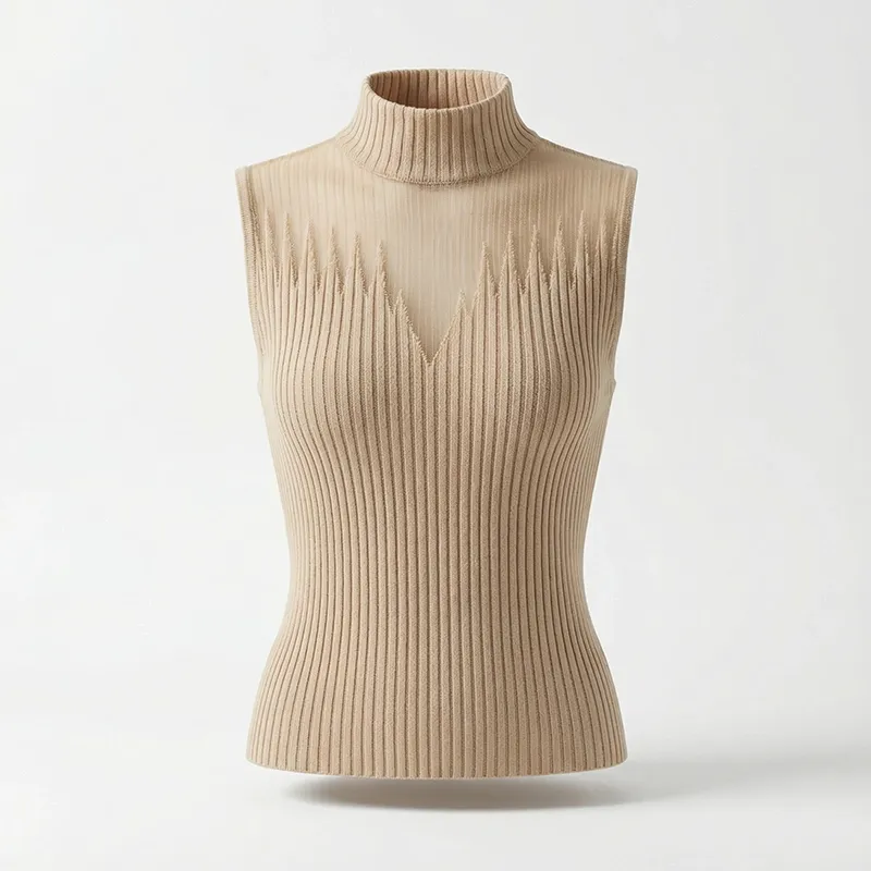 Stickad ärmlös polotröja för dam