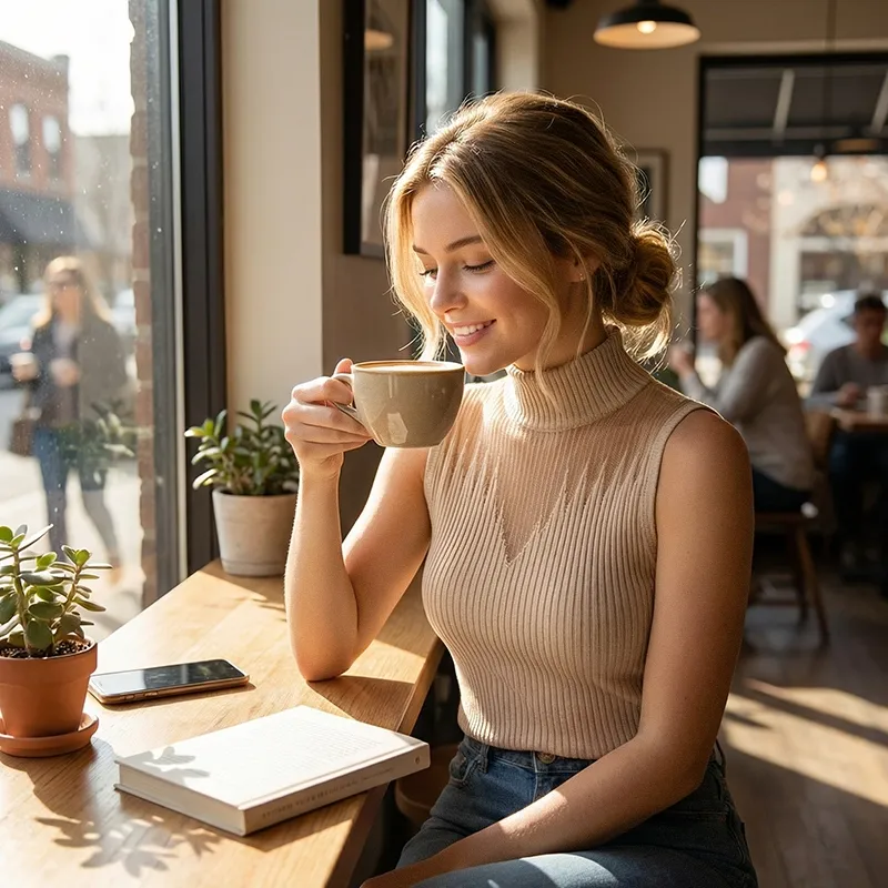 Sarah K.Den här tanktop-tröjan är så mjuk och varm! Jag har använt den i mina skoloutfits hela vintern. Polokragen håller mig varm och ser elegant ut.