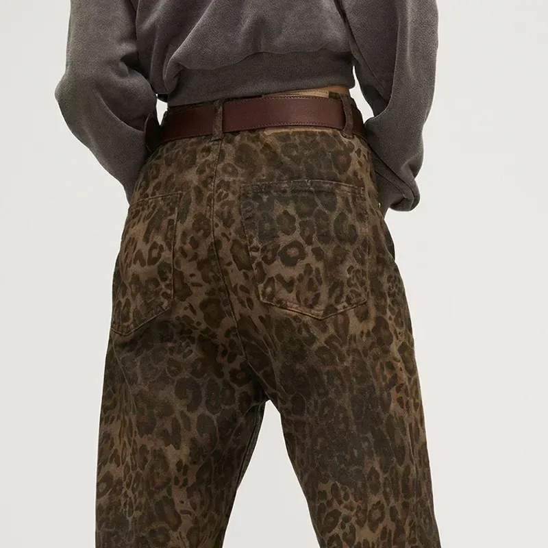 Det djärva leopardmönstret ger personlighet och låter dig uttrycka din stil utan ansträngning. Dessa byxor med vida ben erbjuder rörelsefrihet och komfort, perfekta för heldagsbruk. Premiumdenim garanterar långvarig hållbarhet samtidigt som byxorna behåller sin mjukhet och form efter flera tvättar. Den höga midjan framhäver den naturliga figuren och ger en smickrande siluett. Byxorna är perfekta till brunch, shopping eller kvällsaktiviteter och ger dig många stilsäkra valmöjligheter.