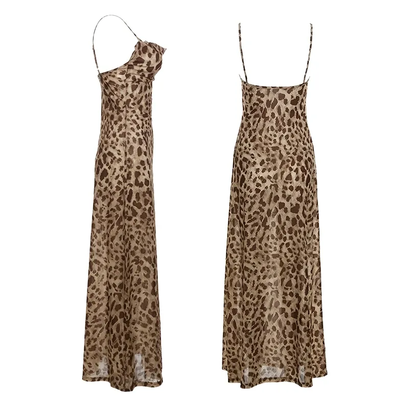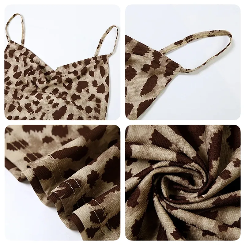 Leopardmönstrad rygglös klänning med spaghetti-band för kvinnor