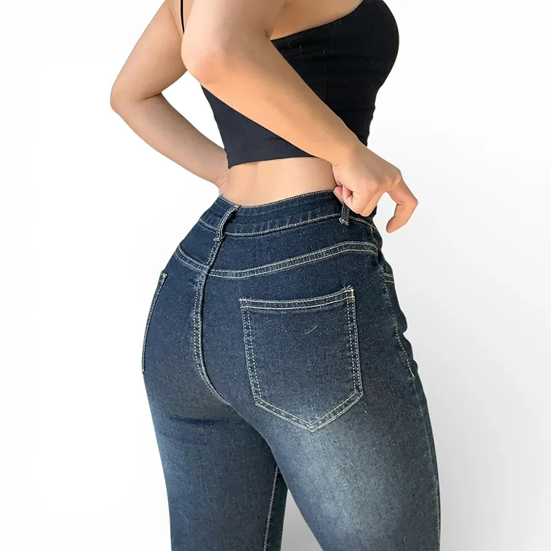 Dessa stiliga denimbyxor ger varje outfit omedelbar charm. Den låga midjan framhäver din unika figur utan att sitta för tight. Mjukt tyg håller dig bekväm hela dagen. Utsvängda ben ger en rolig vintagekänsla till din stil. Välj den storlek som passar dig för en perfekt look.