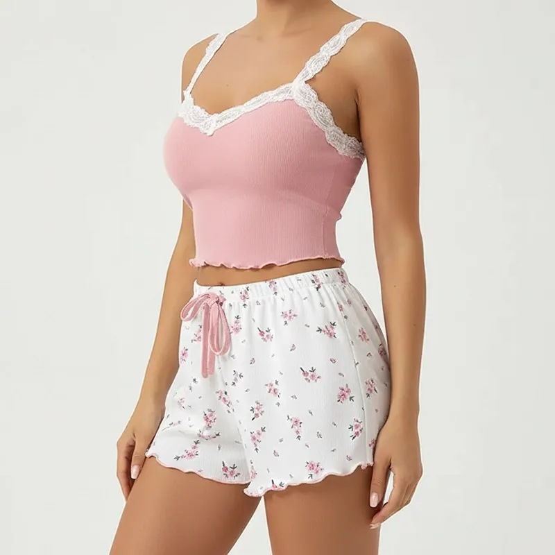 Dessa pyjamas främjar luftcirkulation och håller kroppen fräsch under varma nätter. Det mjuka och släta materialet känns behagligt mot huden och skapar en mysig, avkopplande atmosfär. Detta nattplagg ger obegränsad rörelsefrihet samtidigt som det behåller en smickrande siluett. Shorts med resår i midjan ger flexibel support och säkerställer komfort under sömn, träning eller avkopplande stunder. Den hållbara konstruktionen ger långvarig användning och behåller sin mjukhet och form efter upprepade tvättar.