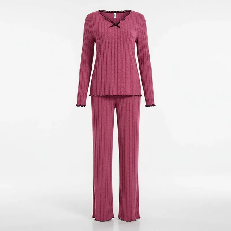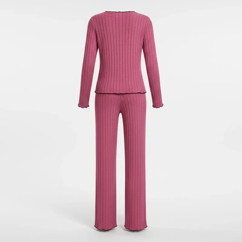 Ribbat pyjamas-set för kvinnor vinter