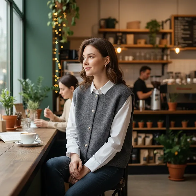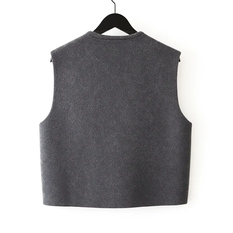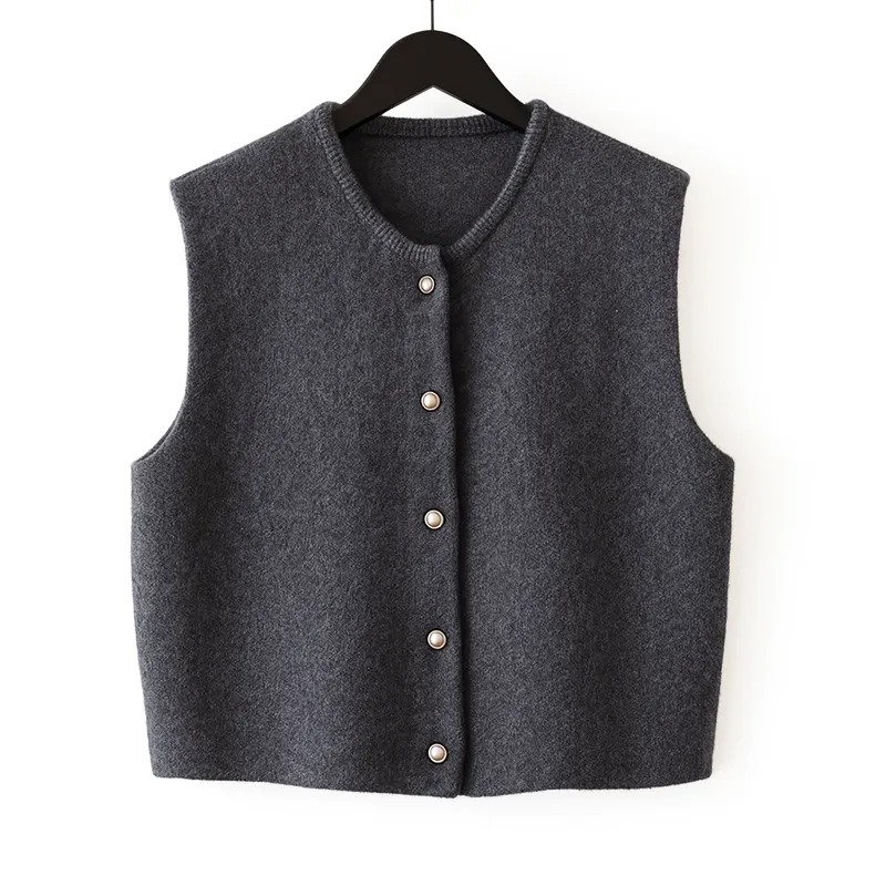 Mjuk stickad kvalitet ger långvarig komfort och behaglig värme. Den ärmlösa designen framhäver ett stilrent, modernt uttryck som passar för övergångsväder. En klassisk rund halsringning kompletterar blusar, skjortor eller klänningar med sofistikerad känsla. Neutrala färger matchar lätt till både avslappnade och eleganta outfits för oändlig flexibilitet. Enkel layering ger året-runt-användning utan att kompromissa med elegansen.