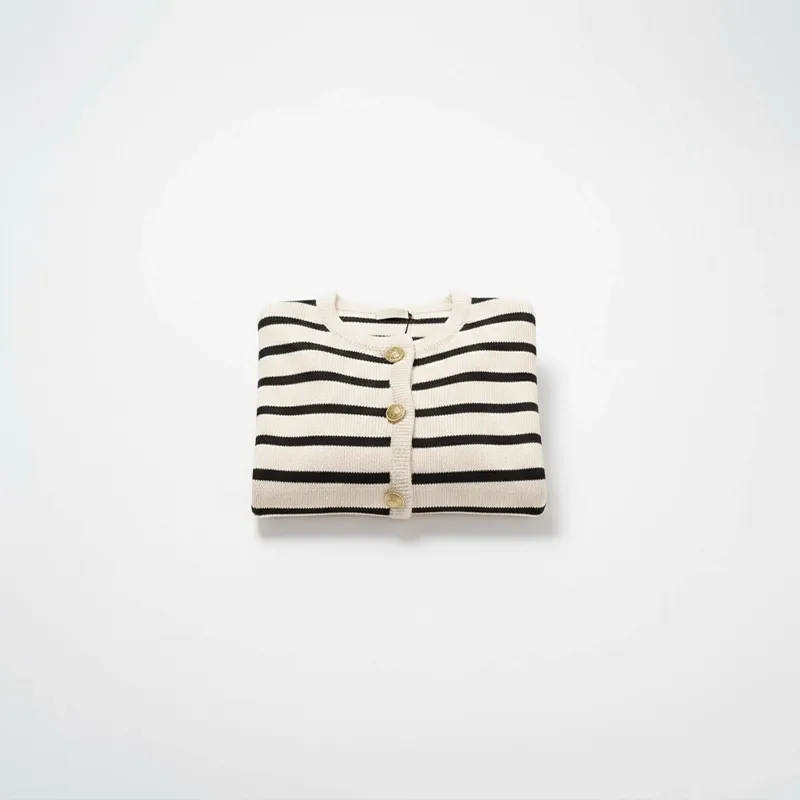 Denna kofta erbjuder tidlösa ränder som ger elegans till vardagslooken. Det mjuka tyget känns behagligt mot huden och håller dig bekväm hela dagen. Långa ärmar ger värme under kyligare dagar, vilket gör lager på lager enkelt och stilfullt. Den mångsidiga designen passar både avslappnade tillfällen och mer uppklädda kvällar, och anpassar sig enkelt efter tillfället. Förbättra din garderob med detta essentiella plagg som balanserar praktiskhet med tidlös stil.