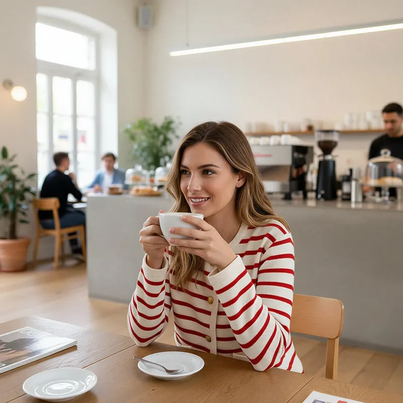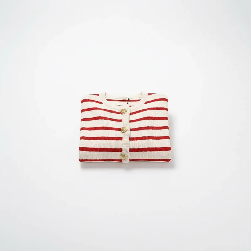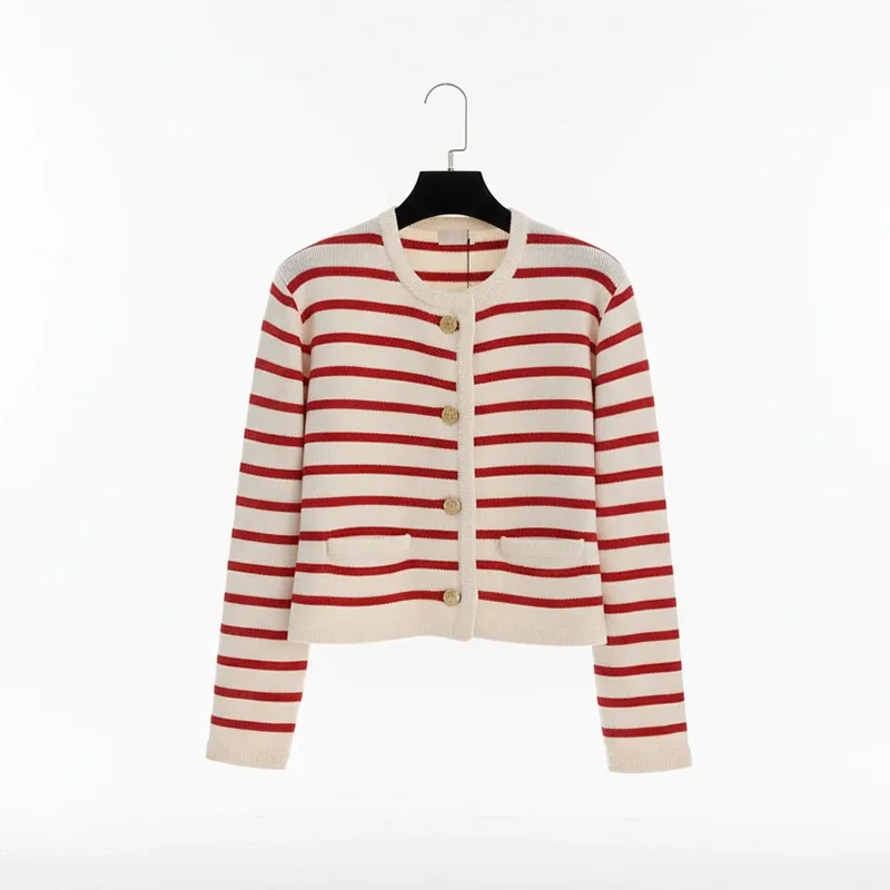 Sophie L.Denna kofta är så mysig och elegant! Ränderna får vilken outfit som helst att sticka ut. Tyget är mjukt och den sitter perfekt, håller mig bekväm hela dagen.